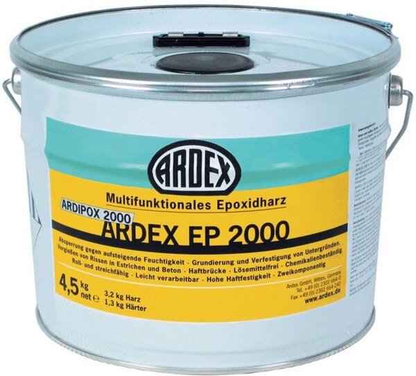 ARDEX EP 2000™ “Primer” Epoxi para la Preparación de Substratos. ARDEX EP 2000™ es una resina epoxi sin solventes, de baja viscosidad y de alto contenido de sólidos (100%), formulada para uso en bases y acabados ARDEX. Es ideal para la imprimación de substratos de concreto y de otros substratos estructuralmente firmes y sólidos antes de instalar los productos ARDEX.