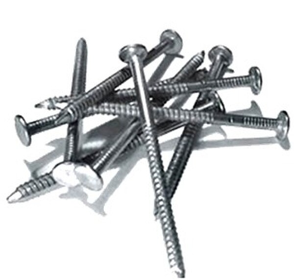 Clavo para Plycem de 2". Clavos hechos de acero al carbono con robusta base en anillos y la punta que prácticamente elimina las divisiones. Después de martillar un clavo, es muy difícil de extraer, tirando hacia fuera, generalmente sólo se rompen. Estos clavos son ideales para estructuras que requieren sujetadores particularmente de alta resistencia.