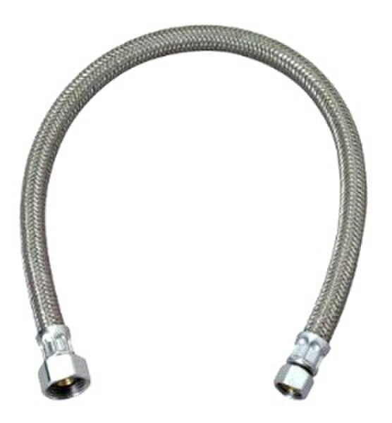 Conector Flexible Reforzado con Polímero Patentado 1/2” x 3/8” x 20”, BrassCraft. Conector flexible hecho de PVC reforzado con una malla trenzada de polímero especial patentado, tuercas en latón niquelado y arandela de goma cónica para sellar. Conector universal para suministrar agua caliente/fría 1/2” FIP x 3/8” Comp. x 20” de longitud.