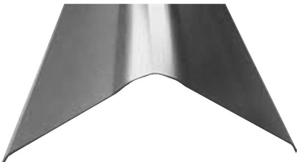 Cumbrera en Acero Galvanizado. Cumbrera de acero galvanizado calibre 30 utilizada para instalar en la parte superior de techos de metal de dos aguas en proyectos comerciales o residenciales.