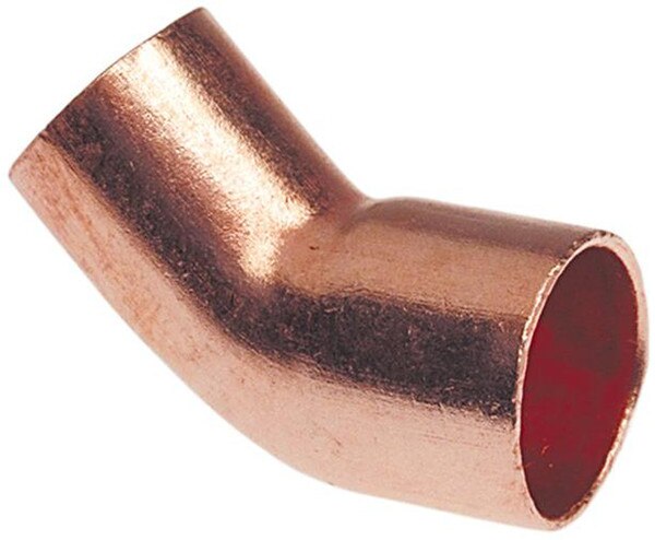 Curva Niple de Cobre de 45° Ftg x C, 606-2, Nibco®. Curva de cobre de 45° sin plomo para soldar, se utiliza en sistemas residenciales y comerciales tales como agua potable, aire acondicionado y refrigeración. Curva de cobre de 45° con extremos para soldar hembra y macho, permite cambiar la dirección de la tubería de línea en un ángulo de 45 grados.
