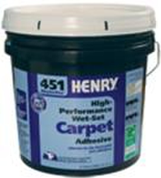 Pega de Alto Rendimiento para Fijación de Alfombras en Húmedo 451, Henry. Adhesivo de alto rendimiento de fijación en húmedo diseñado para instalar forros de alfombra difíciles en áreas de tráfico pesado. Extremadamente versátil-para todos forros de alfombra excepto el vinilo, integridad de adherencia superior ofreciendo excelente rendimiento a largo plazo.