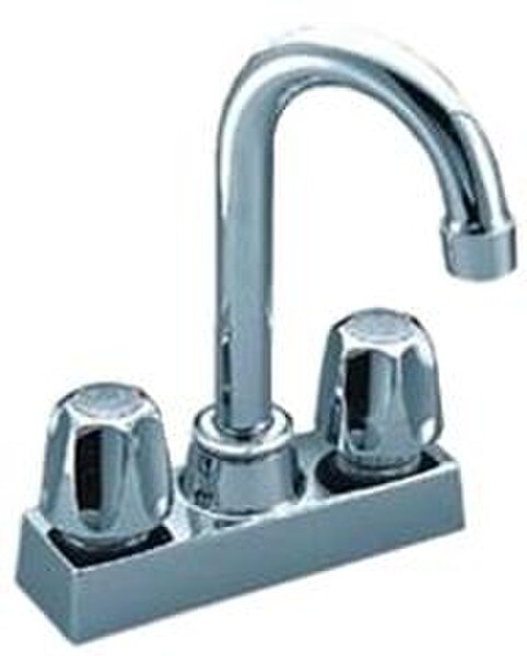Mezcladora para Barra de 2 Manecillas, Nestco Premium. Mezcladora de dos manecillas con rociador tubular de metal giratorio, centro de 4", construcción de latón con acabado cromado y conexión de ½” MPT.