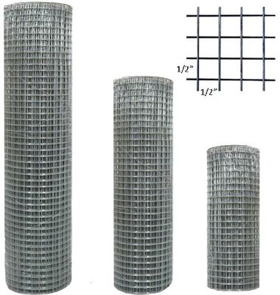 Tela Metálica con Malla de 1” x 1/2” Calibre 16. Tela metálica de alta calidad hecha de alambre de acero galvanizado calibre 16, soldado en malla de 1” x 1/2”, en rollo de 24”, 36” y 48” de ancho x 100’ de largo, ideal para jaulas para animales y aviario, cercas, jardines y mucho más.