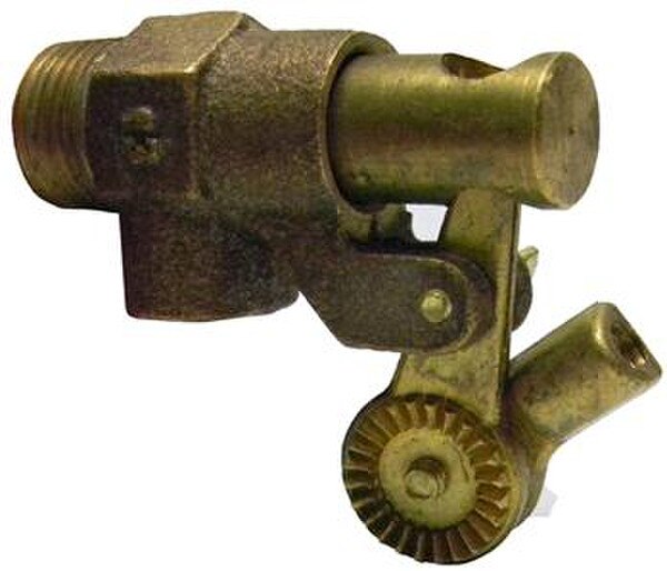 Válvula de flotador de 1/2" para Cisterna, en Bronce, Ranido. Rosca macho de entrada para conexión de tubería y tuerca de seguridad con brazo dentado ajustable de alta resistencia. Entrada de ½” MIP x ½" de salida lisa x ¼” para el vástago.